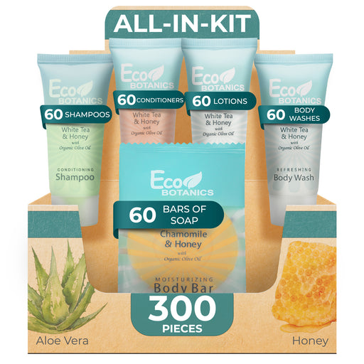 Original price $169.99 - Original price $169.99Original price$169.99$169.99 - $169.99Current price $169.99| /Eco Botanics Hotel Soaps & Toiletries Bulk Set | 0.85oz Hotel Shampoo & Conditioner, Body Wash, Body Lotion & Bar Soap Travel Size | 300 Pieces